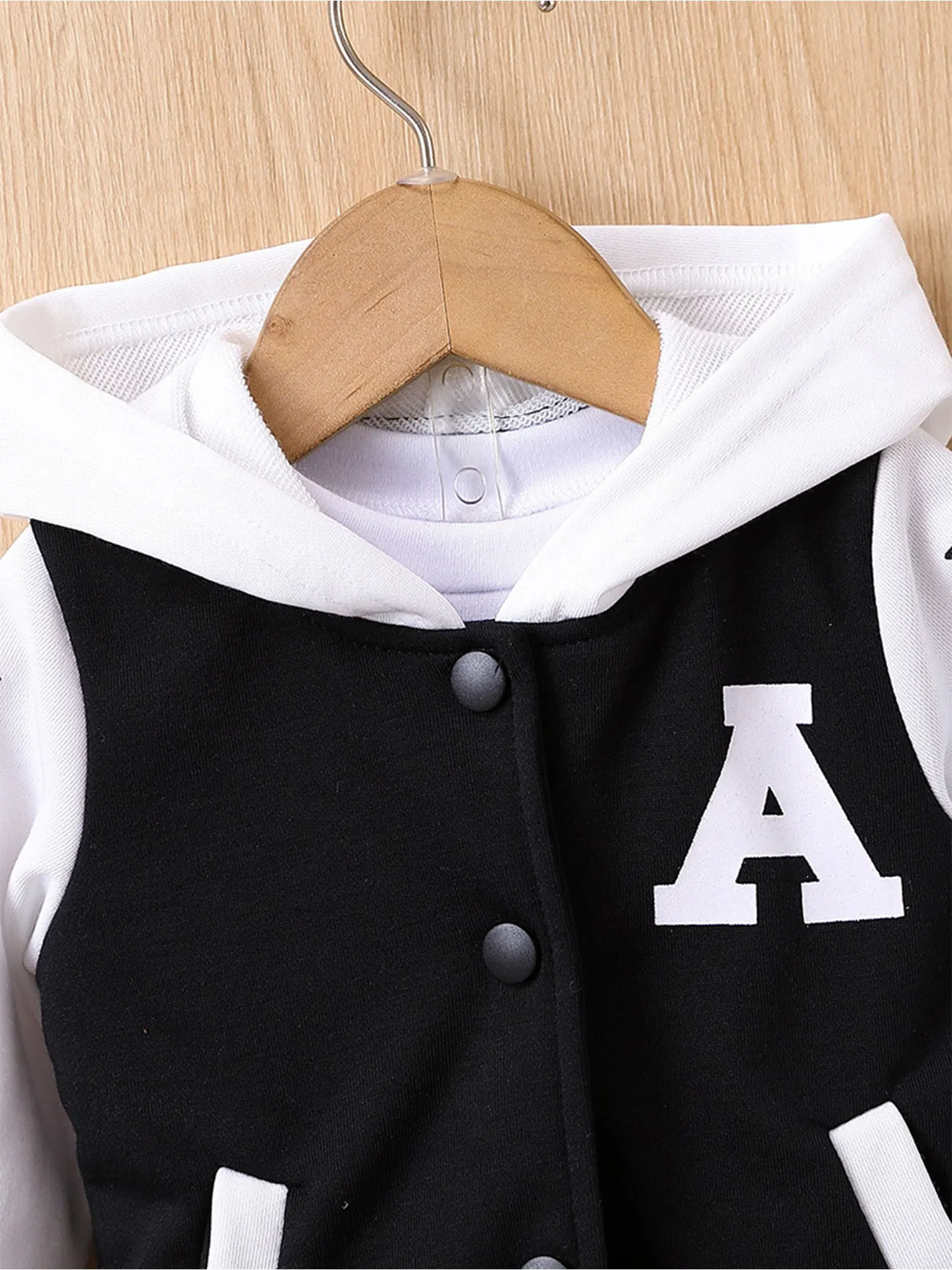 The long sleeve hooded coat with a press-button closure is both practical and stylish, adding a trendy touch to your baby’s look.