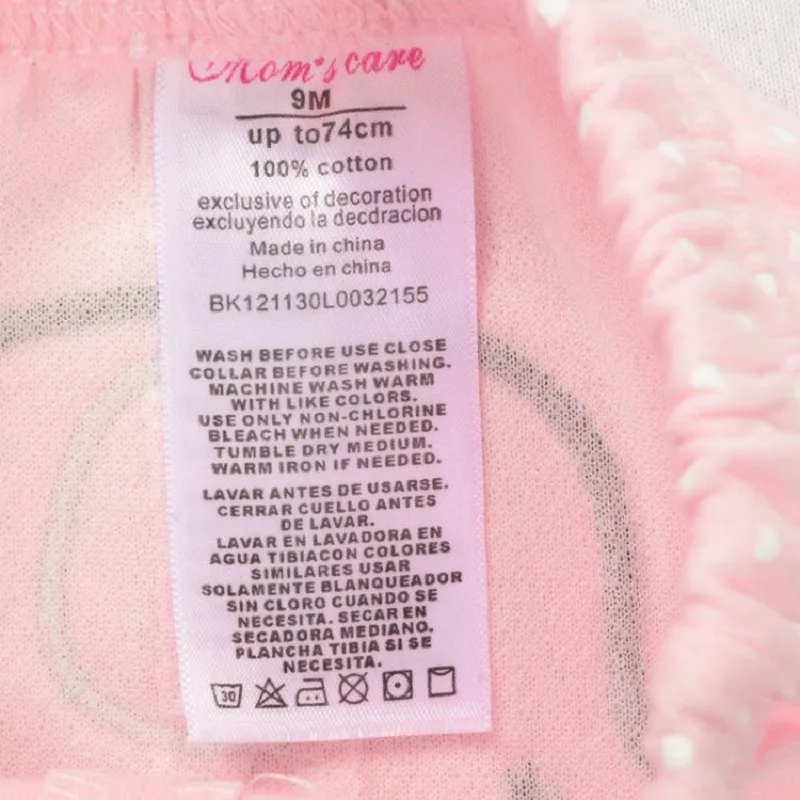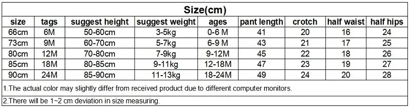 5 sizes: 6 months,9 months,12months,18 months,24 months.